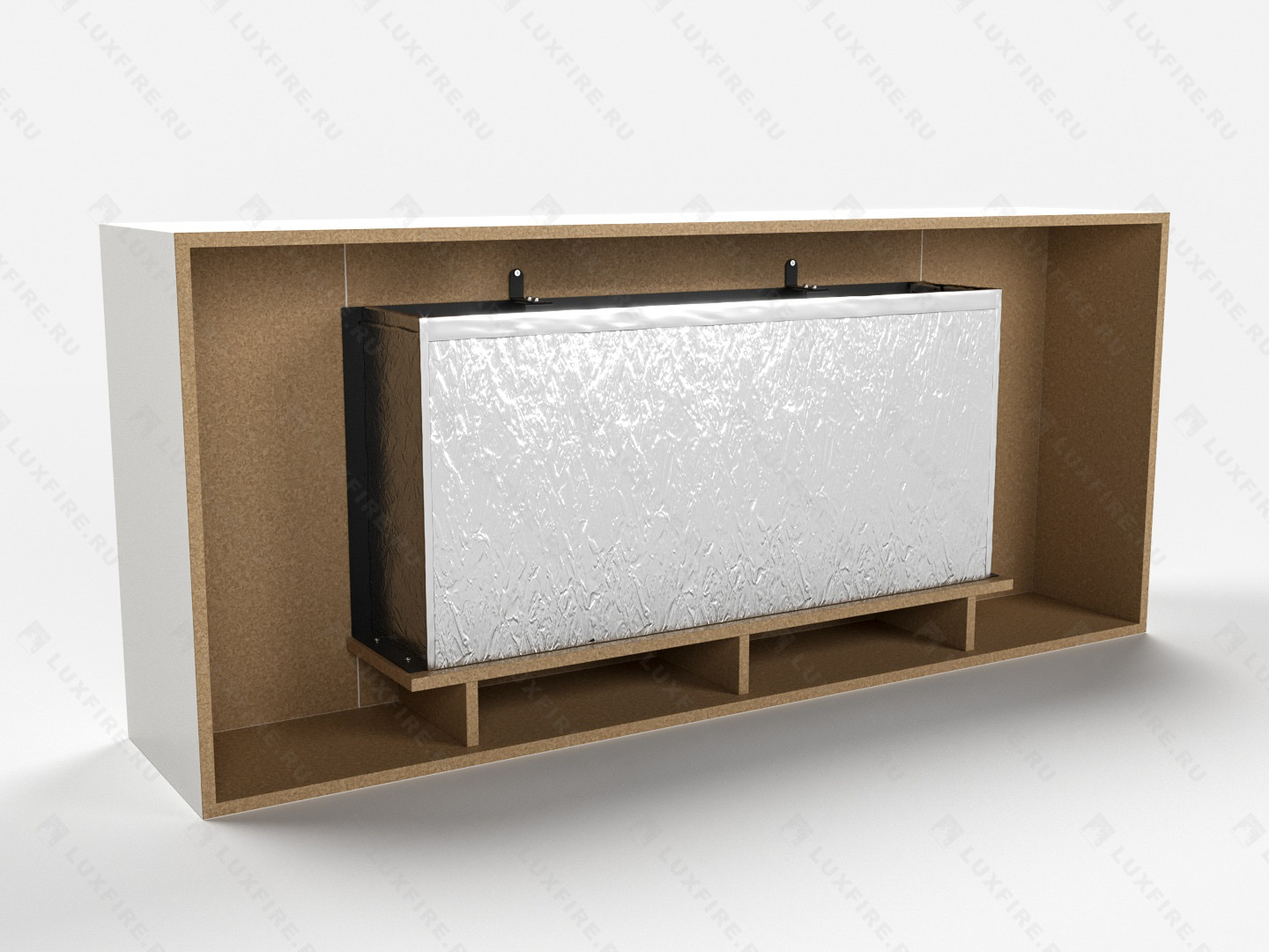 Представляет собой сборную окрашенную конструкцию из МДФ c портальным биокамином Lux Fire "Фаер Бокс 1-42"