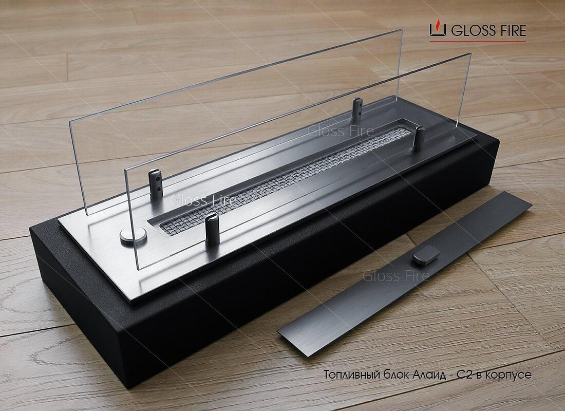 Пламегаситель - даёт возможность потушить биокамин в любое время и закрыть его, оставляя биотопливо внутри блока. Благодаря тому, что пламегаситель лежит за пределами ТБ, он не нагревается, что сводит к минимуму запах при тушении.