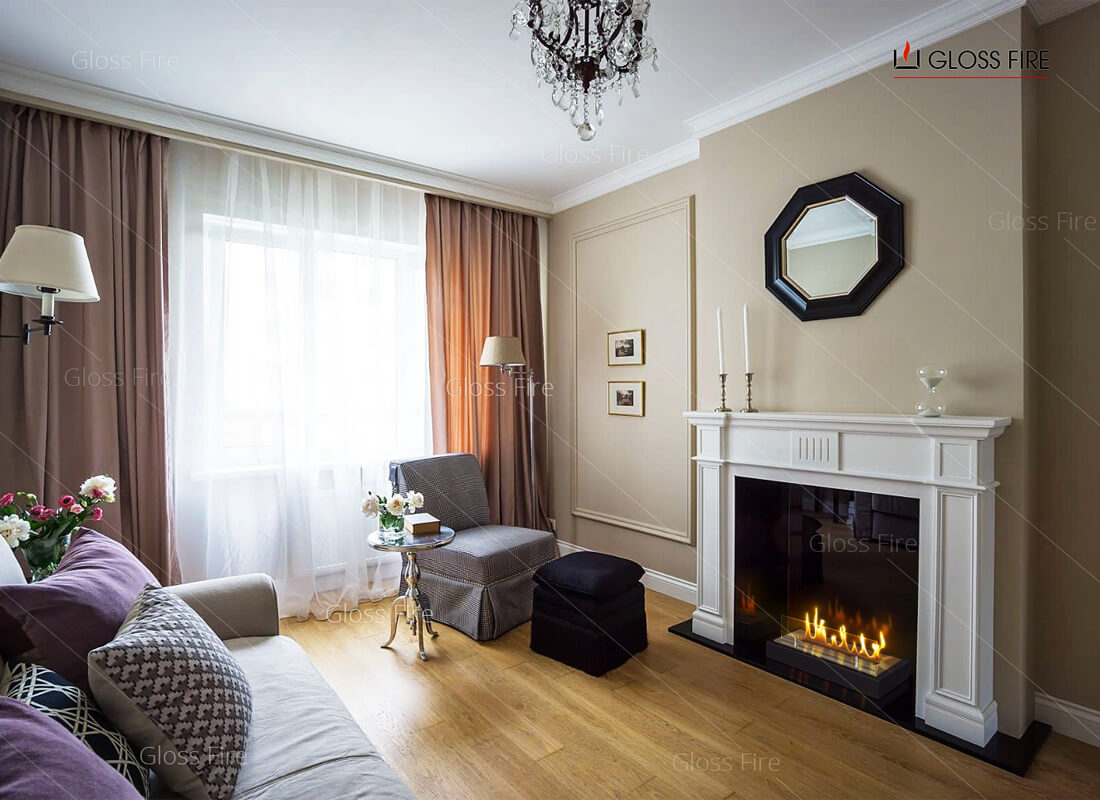 Бокамин отлично впишется в специальные порталы, тумбы или оборудованные ниши. Состоит из стальной подставки, топливного блока и двух декоративных стёкол. Разработано как отдельно стоящая модель.